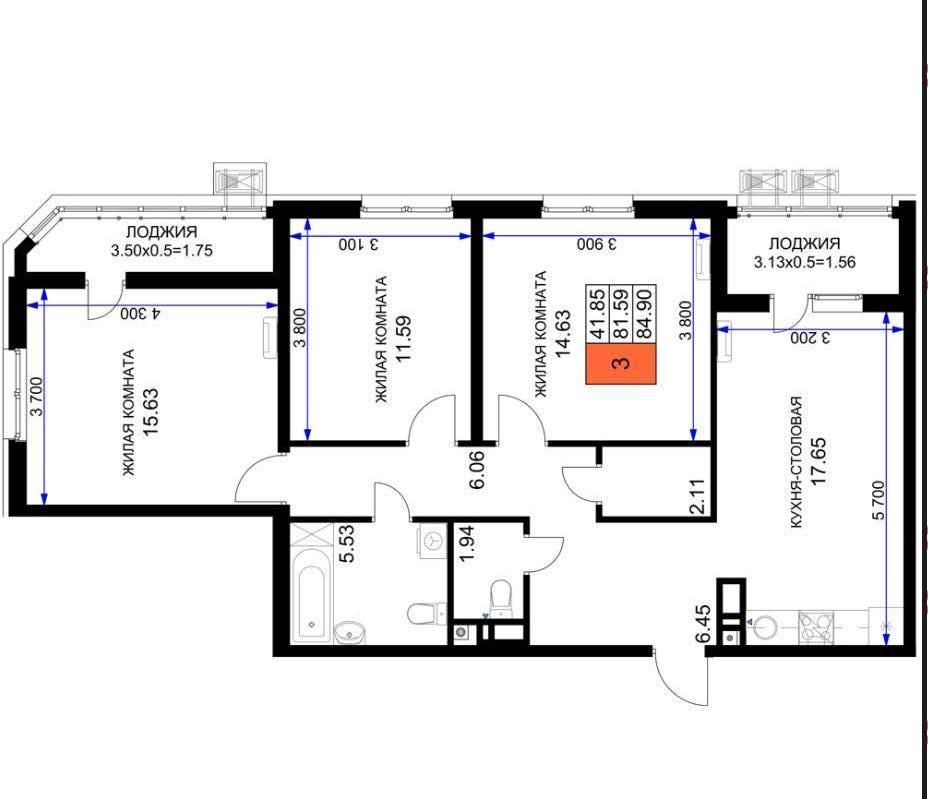 | Комнат в квартире | 3 |