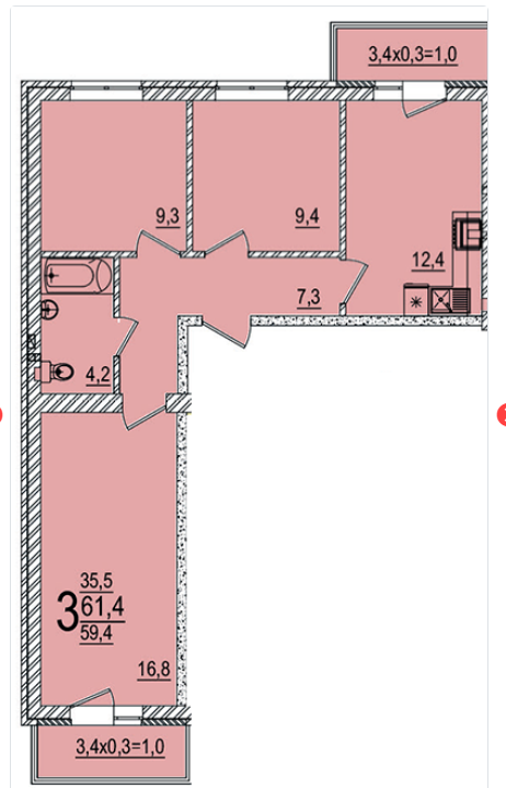 Продается 3-х комн. новостройка, 61.4 кв.м., 2/5 эт