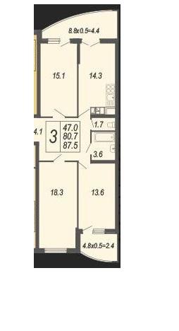 Продается 3-х комн. новостройка, 87.5 кв.м., 10/19 эт