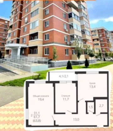 Продается 2-х комн. новостройка, 63.8 кв.м., 5/10 эт