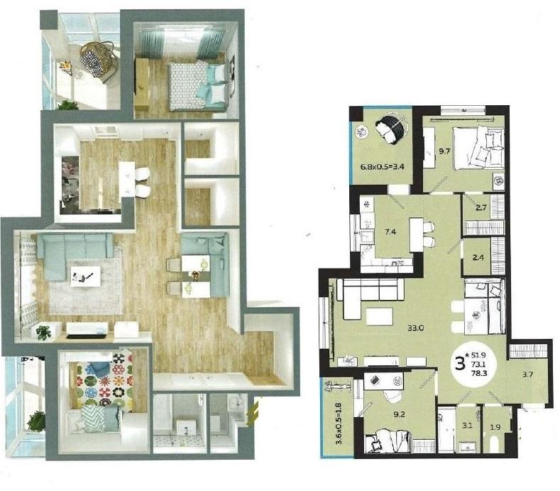 Продается 3-х комн. новостройка, 78.3 кв.м., 11/24 эт