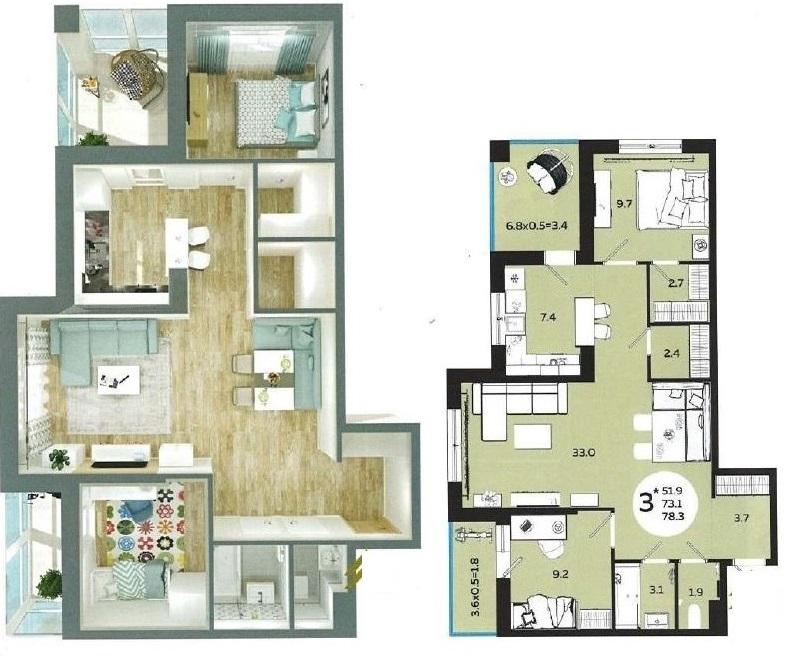 Продается 3-х комн. новостройка, 78.3 кв.м., 13/24 эт