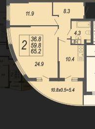 Продается 2-х комн. новостройка, 65.2 кв.м., 17/18 эт