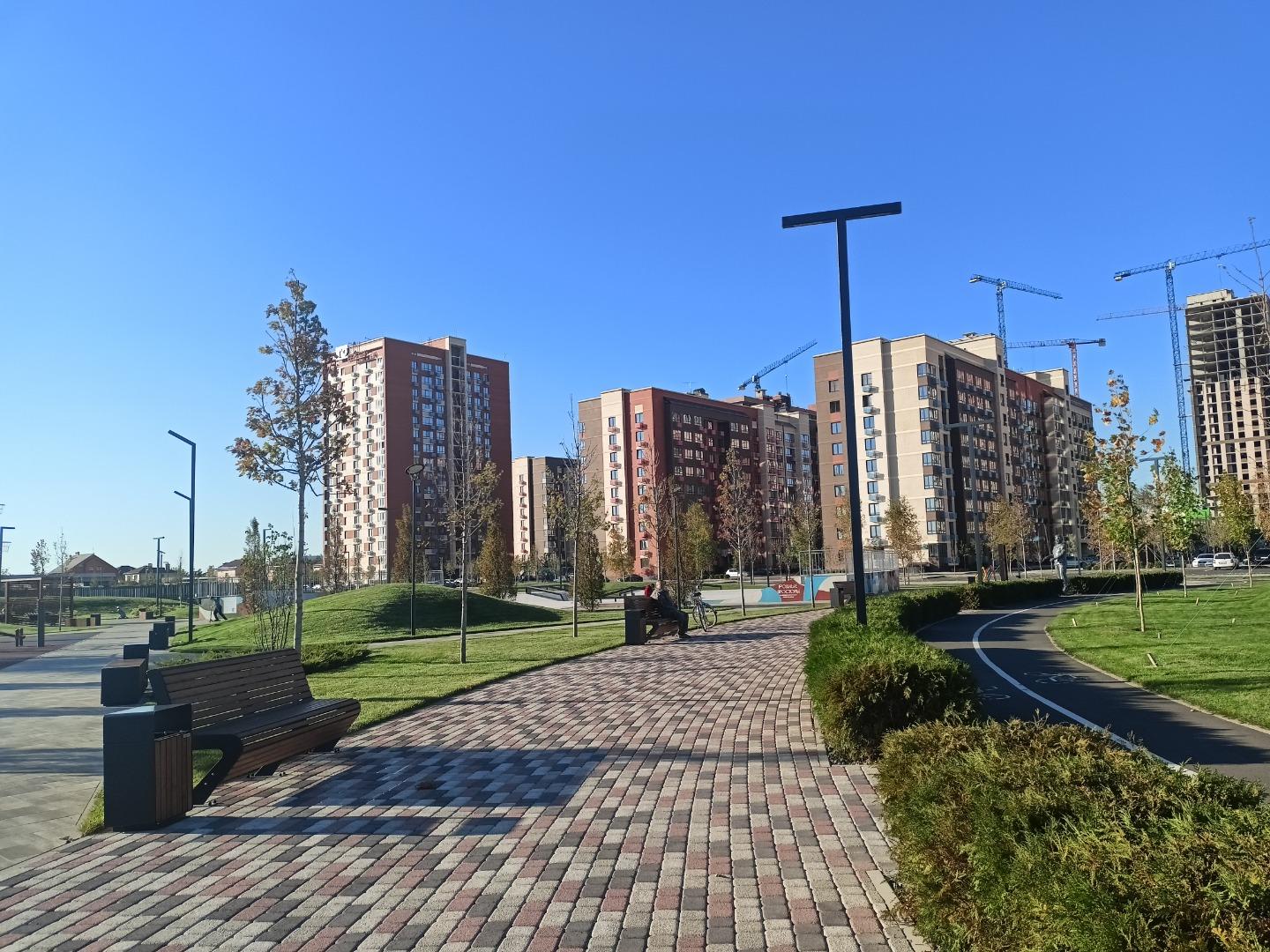Новый формат города . Огромный микрорайон из 29 домов разной этажности , современные дома в европейском стиле , просторные дворы, пешеходные аллеи, новая школа, три детских сада, муниципальная поликлиника, храм, фитнес центр, все возможные магазины, кафе, салоны все находится прямо в комплексе. отличная транспортная развязка, автобусные остановки в любую часть города. Рядом с комплексом расположен огромный парк по типу парка Краснодар, отличное место для занятий спортом , прогулок с детьми и пикника на свежем воздухе. в парке расположен поющий фонтан, сцена, вело дорожки, красочные площадки для детей, лежаки, удобные скамейки, площадка для выгула собак. Современный дом с дизайнерской входной группой, пандусом, скоростными лифтами, колясочной и омывочной для животных. Квартира просторная и очень светлая, хорошая планировка в предчистовой отделке. По всем вопросам звоните . Анна.