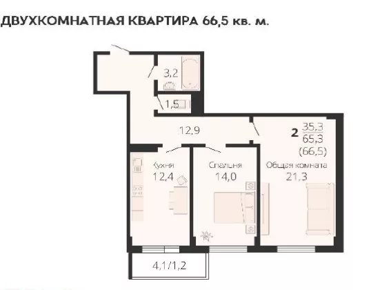 Продается 2-х комн. новостройка, 66.5 кв.м., 8/9 эт