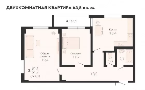 Продается 2-х комн. новостройка, 63 кв.м., 9/9 эт