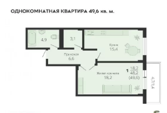 | Площадь, кв.м. | 49.6 |