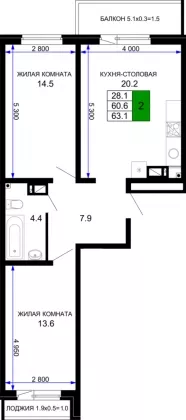 Продается 3-х комн. новостройка, 63.1 кв.м., 10/16 эт