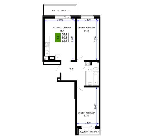 Продается 3-х комн. новостройка, 62.1 кв.м., 11/16 эт