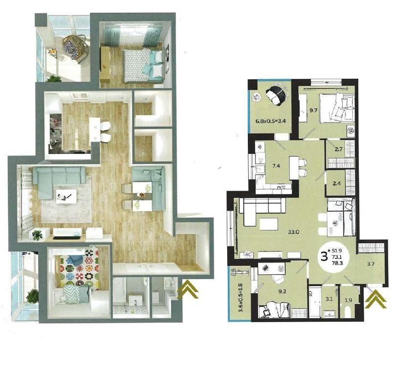 | Площадь, кв.м. | 78.3 |