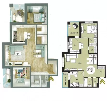 Продается 3-х комн. новостройка, 78.3 кв.м., 5/24 эт