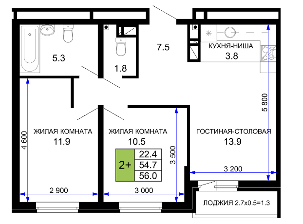 | Площадь, кв.м. | 56 |