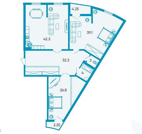 Продается 2-х комн. новостройка, 149.6 кв.м., 10/21 эт
