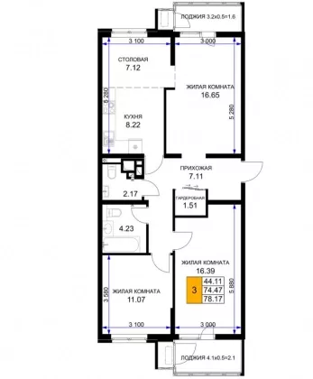 Продается 3-х комн. новостройка, 81.7 кв.м., 9/16 эт