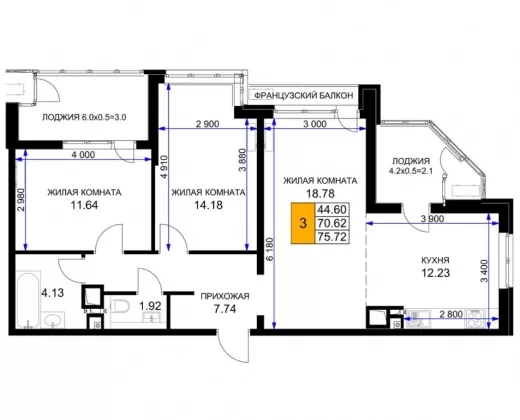| Комнат в квартире | 3 |