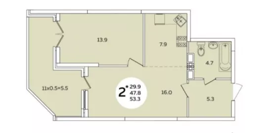 Продается 2-х комн. новостройка, 53 кв.м., 12/21 эт