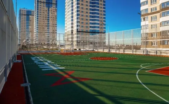 Рядом есть все. Школа и дет сад. Транспортная развязка и большие магазины.