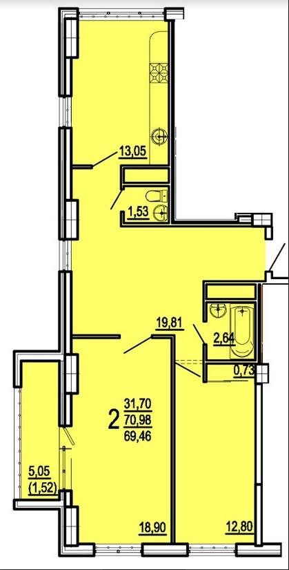 Продается 2-х комн. новостройка, 69.5 кв.м., 6/16 эт