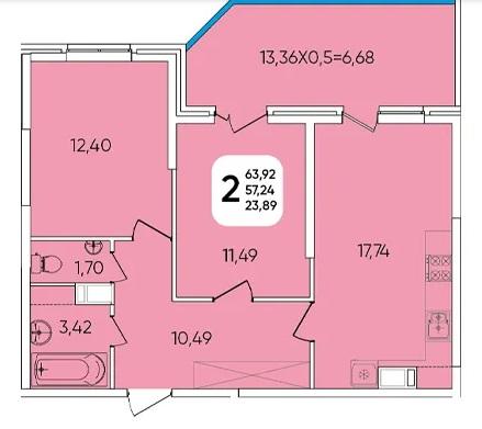 Продается 2-х комн. новостройка, 64 кв.м., 12/24 эт