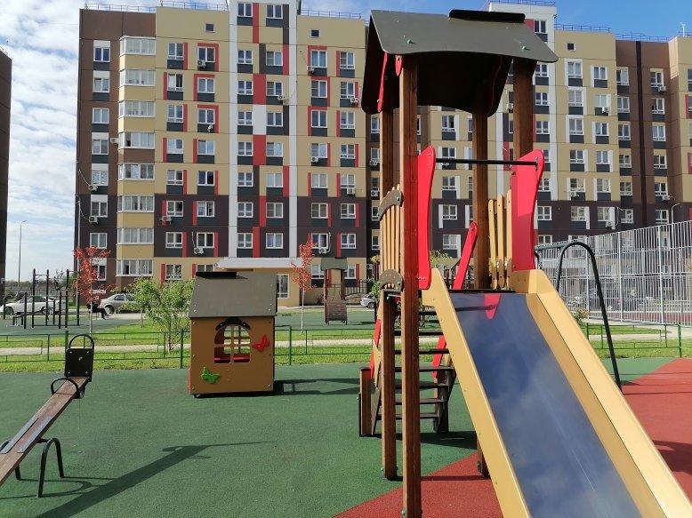 Большое расстояние между домами, много места для парковки автомобилей. Двор с красочными детскими и спортивными площадками , скамейками для отдыха и зелеными кустарниками и деревьями. Здесь хочется жить приезжайте и убедитесь сами.