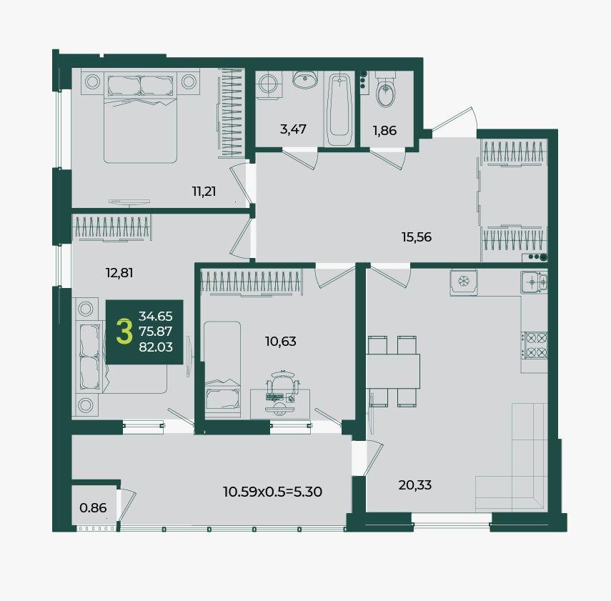 Продается 3-х комн. новостройка, 82.03 кв.м., 7/18 эт