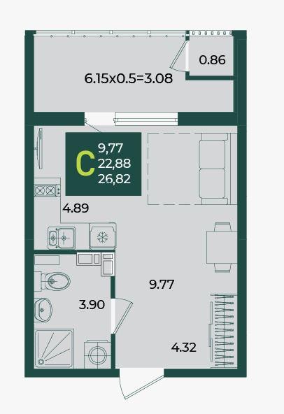 Продается Студия новостройка, 27 кв.м., 4/18 эт