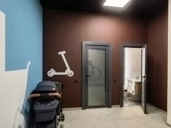Колясочные и боксы для велотранспорта, лапомойки для питомцев, туалеты.