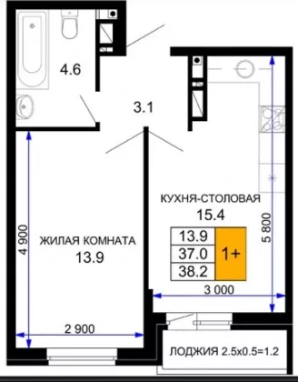 Продается однокомнатная новостройка, 38.2 кв.м., 12/16 эт