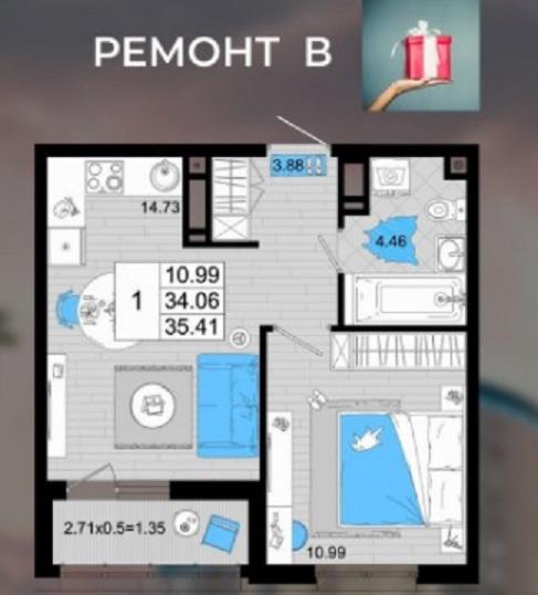 Продается однокомнатная новостройка, 36 кв.м., 10/18 эт