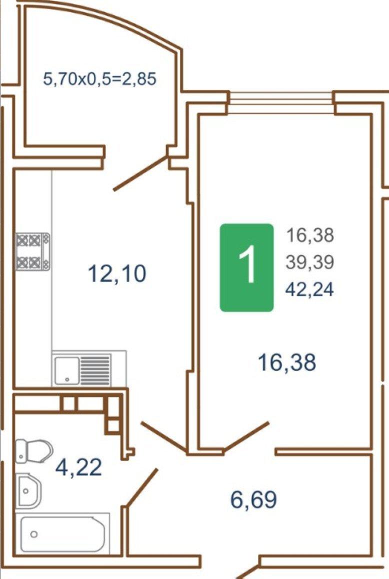 Продается однокомнатная новостройка, 42.24 кв.м., 3/16 эт