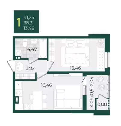 | Площадь, кв.м. | 41.24 |
