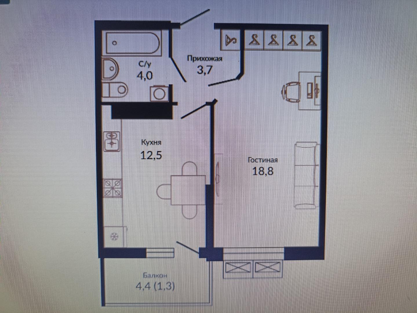 В избранное однокомнатная квартира