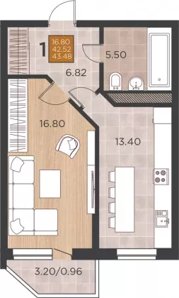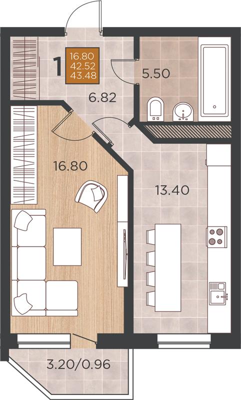 Продается однокомнатная новостройка, 43.95 кв.м., 13/17 эт