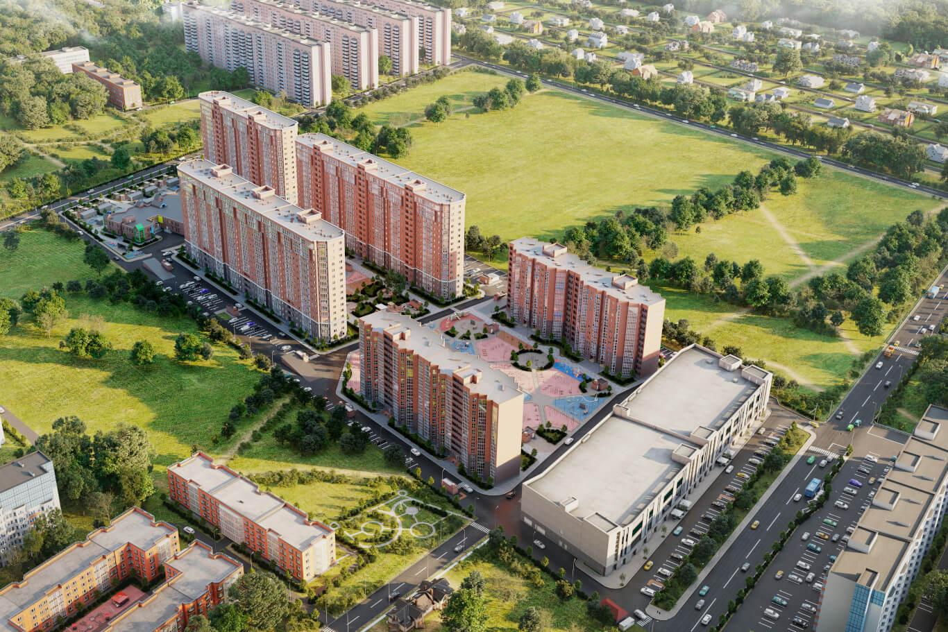 На территории свой детский сад, спортивные и детские площадки, зеленые зоны отдыха, множество коммерческих помещений