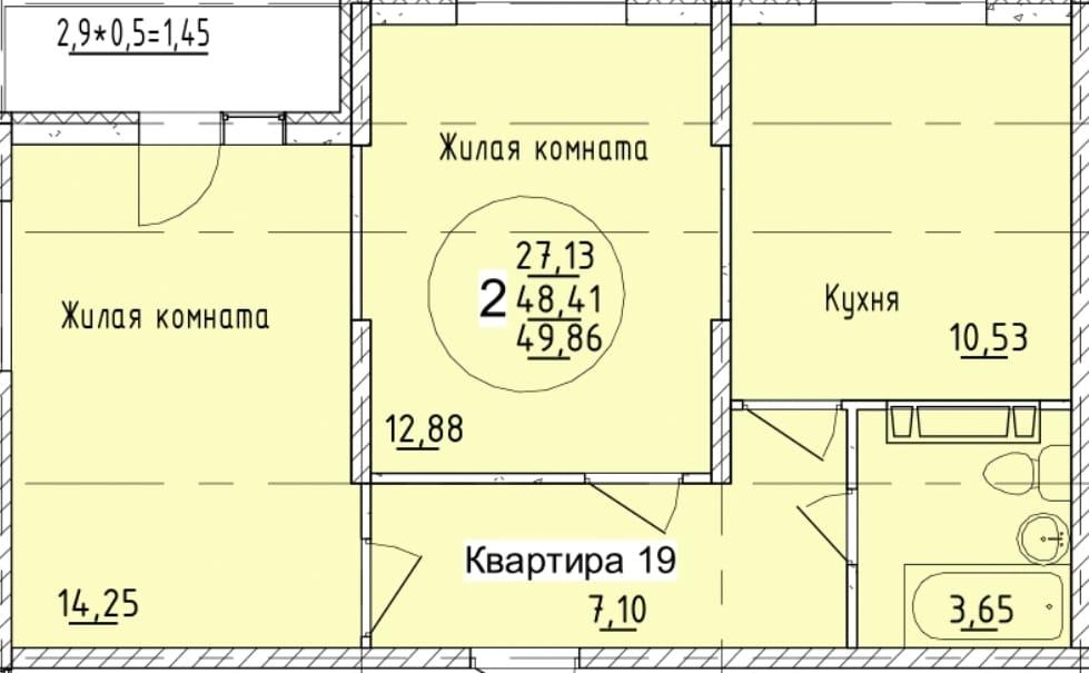 Продается 2-х комн. новостройка, 49.86 кв.м., 7/19 эт