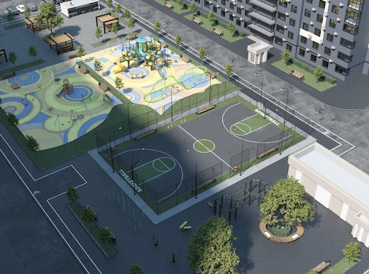 На территории подземный паркинг, собственная парковая зона, детские и спортивные площадки, коммерческие помещения!