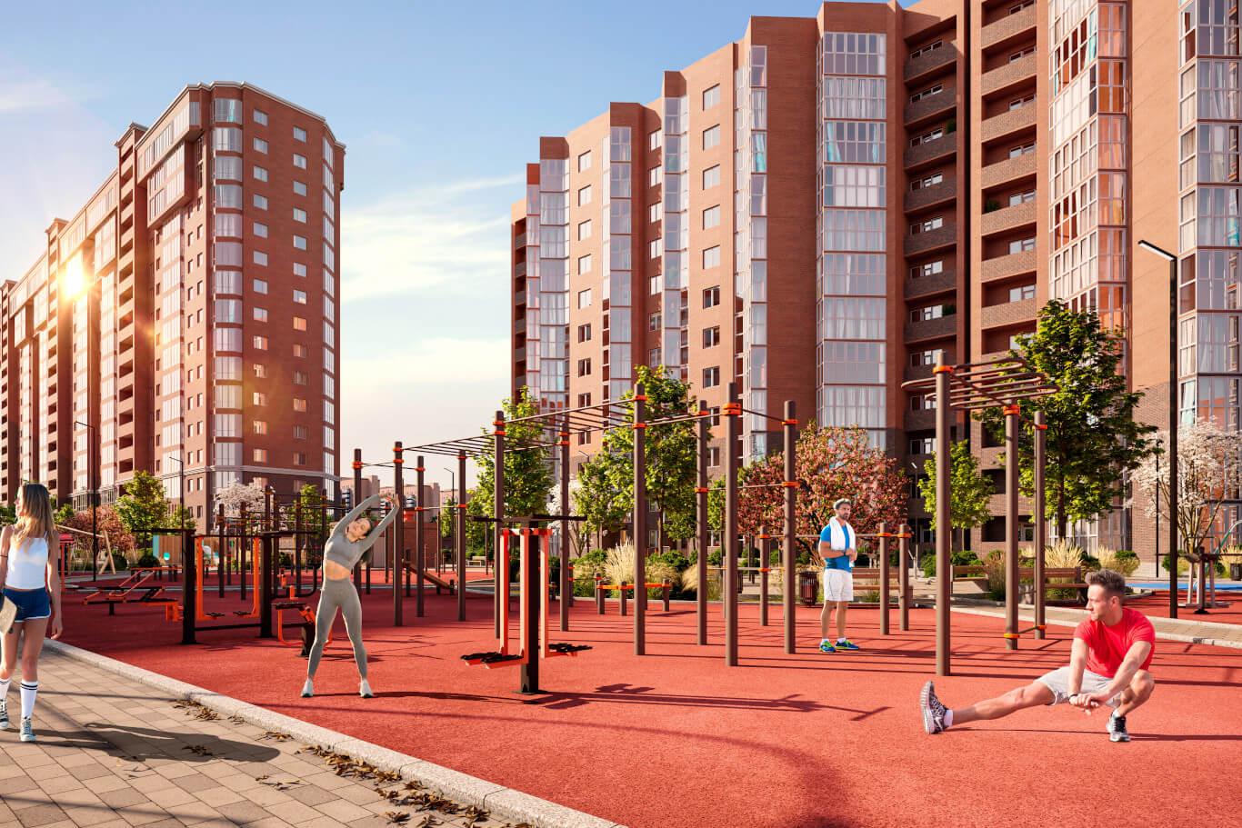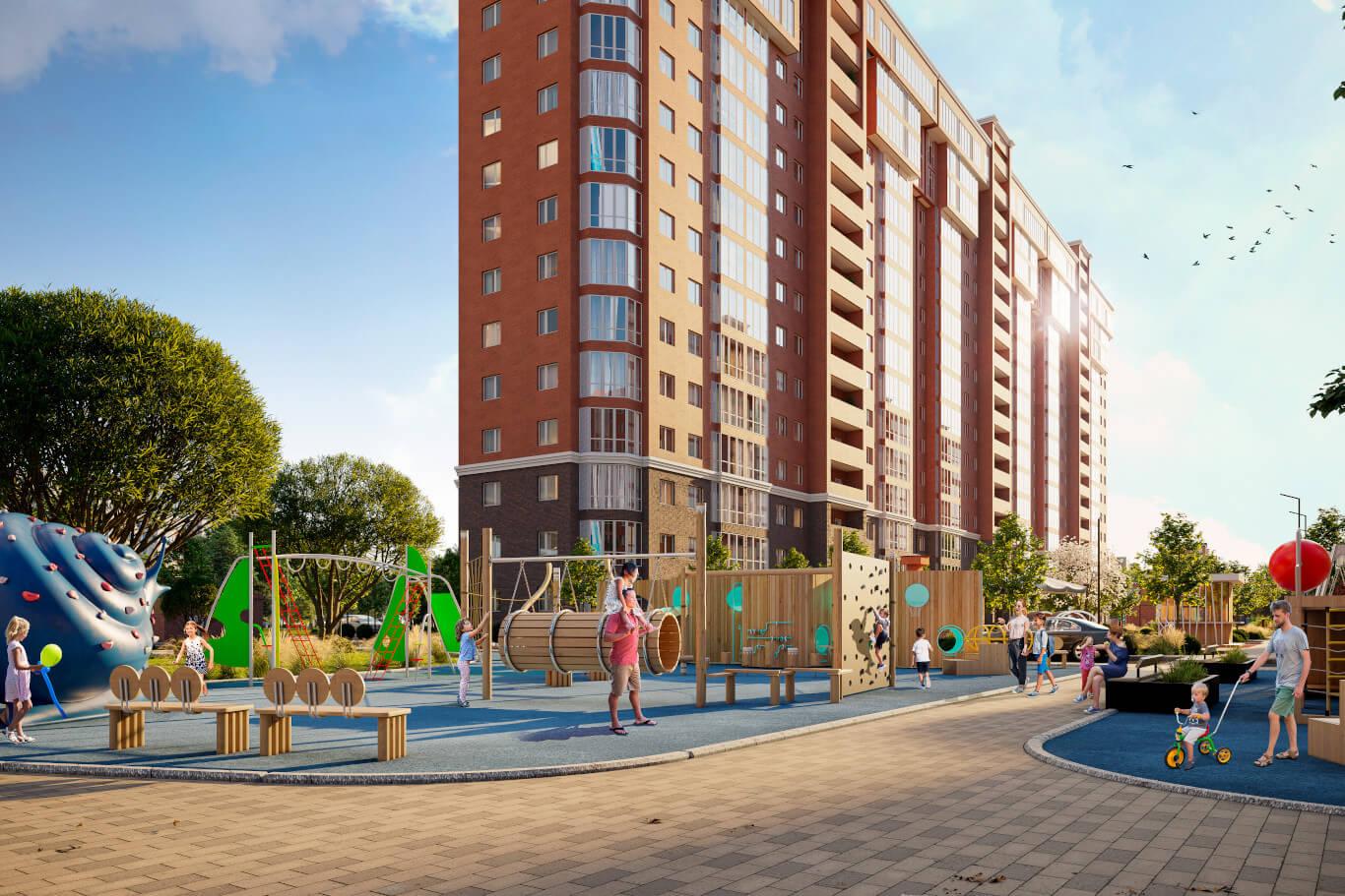 На территории свой детский сад, спортивные и детские площадки, зеленые зоны отдыха, множество коммерческих помещений.