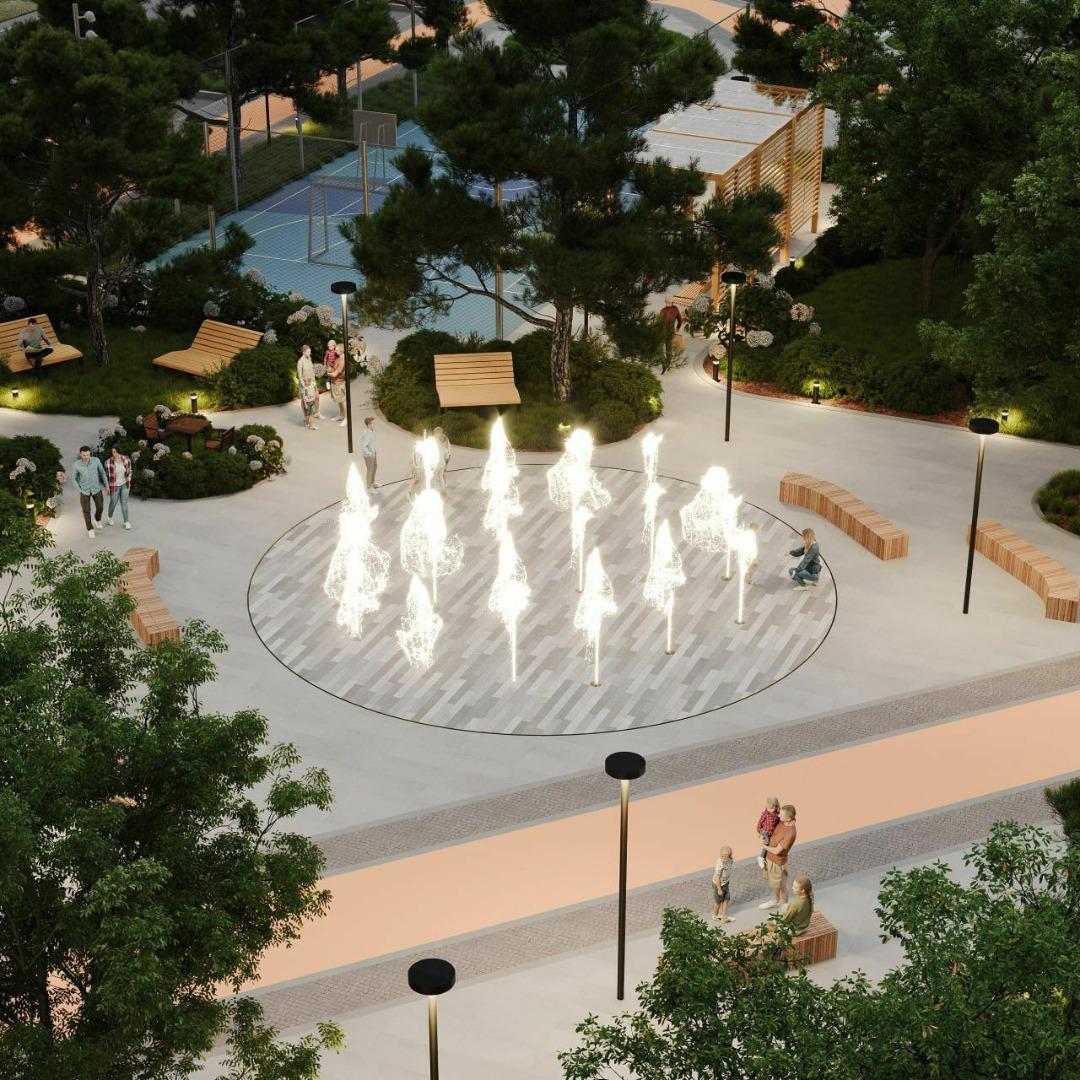 Во дворе фонтан, детские и спортивные площадки по возрастам, теннисный корт...