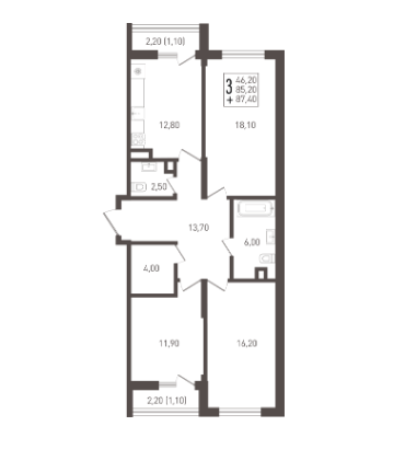 Продается 3-х комн. новостройка, 90 кв.м., 7/8 эт