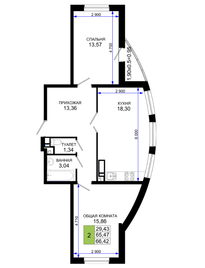 Продается 2-х комн. новостройка, 64.42 кв.м., 16/19 эт