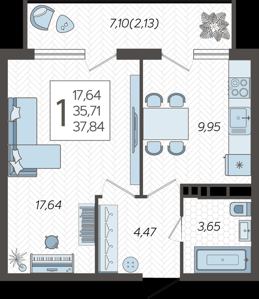 Продается однокомнатная новостройка, 40 кв.м., 15/21 эт