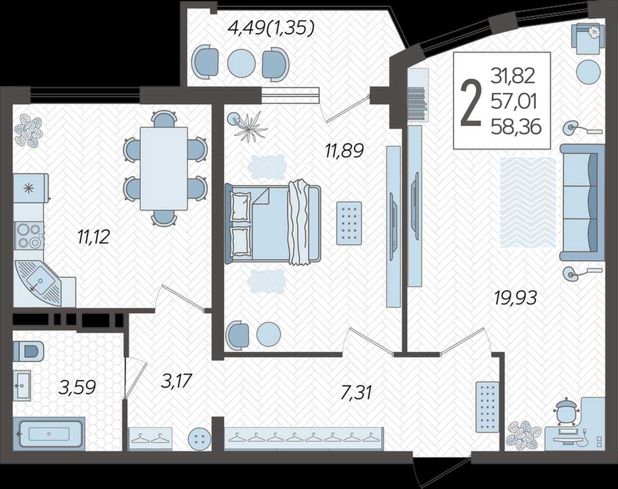 Продается 2-х комн. новостройка, 63 кв.м., 12/21 эт