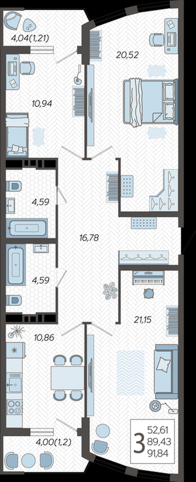 Продается 3-х комн. новостройка, 97 кв.м., 16/21 эт