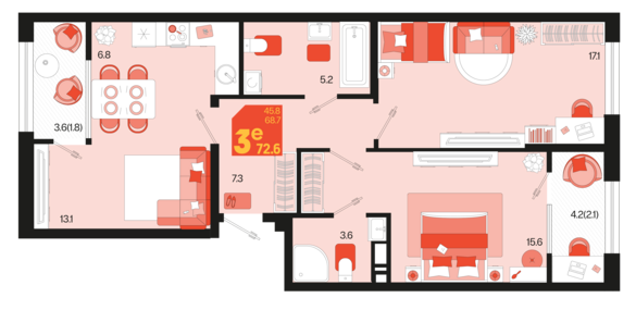 Продается 3-х комн. новостройка, 72.6 кв.м., 16/18 эт