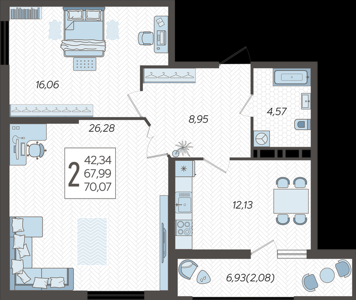 В избранное Двухкомнатная квартира