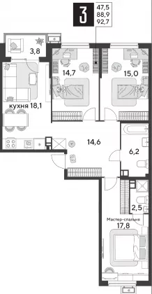 Продается 3-х комн. новостройка, 92.7 кв.м., 5/9 эт