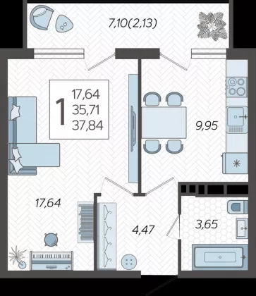 Продается однокомнатная новостройка, 40 кв.м., 3/21 эт