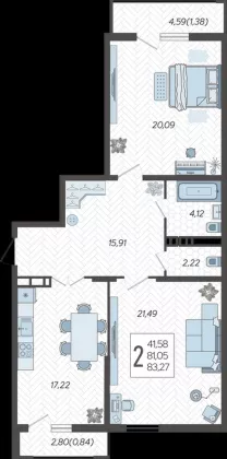 Продается 2-х комн. новостройка, 88 кв.м., 7/21 эт