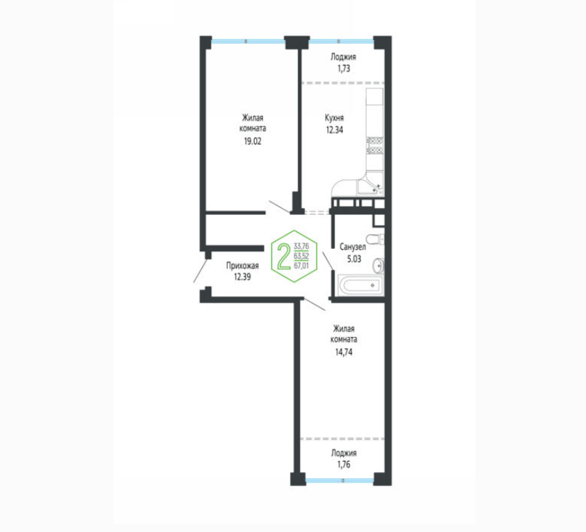 Продается 2-х комн. новостройка, 67.01 кв.м., 5/24 эт