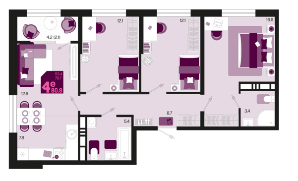 Продается 4-х комн. новостройка, 80.8 кв.м., 7/18 эт
